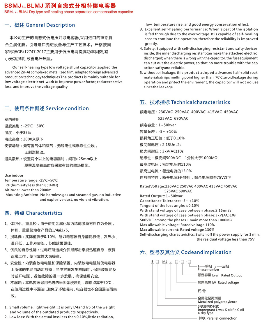 BSMJk、BLMJ 自愈式分相補償電容 - 自愈式分相補償電容器 - 浙江威德康電氣有限公司